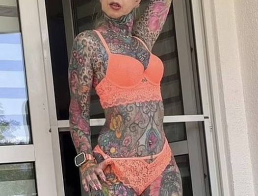 The German-based influencer has images of vibrant roses on her legs, a leopard print tattoo on her shoulders, and several detailed portraits on her arms. These tattoos happen to be among dozens of others on her entire body.