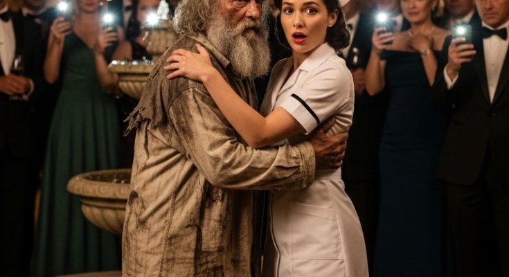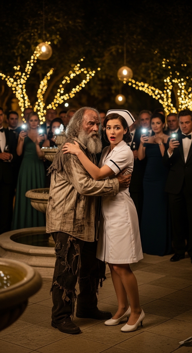 Lucía arrived panting, pushed the guards aside with a blow, and stood in front of the indigente. She looked at him. Not at the dirty coat, but at the bush, but at the beard.