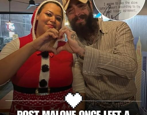Music icon Post Malone is trending once again, but it’s not for a new chart-topping hit. Instead, the “Sunflower” singer is being praised for a viral act of kindness involving a single-mother waitress. According to reports, Malone turned a routine dining experience into a life-changing moment by leaving a $20,000 gratuity. What makes the story particularly striking to the public is the lack of fanfare; there were no cameras or public announcements made by the star. In a digital landscape often obsessed with “clout-chasing,” Malone’s gesture stands out as a rare example of authentic, quiet generosity that speaks louder than any headline