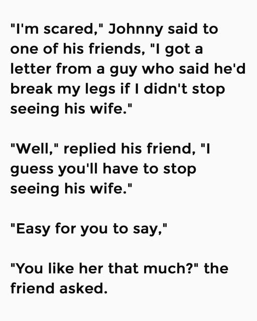 “I’m scared,” Johnny said nervously to one of his friends. “I got a letter from some guy who said he’d break my legs if I didn’t stop seeing his wife.”